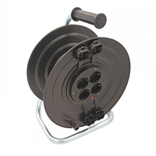 На котушці можна розмістити 50 метрів круглого кабелю ПВС 3х1,5 мм або іншого кабелю відповідного діаметру. Котушка для кабелю має зручну ручку із пластику, каркас виготовлений з металу. Розетки із заземленням оснащені заглушками для запобігання попадання бруду і пилу.