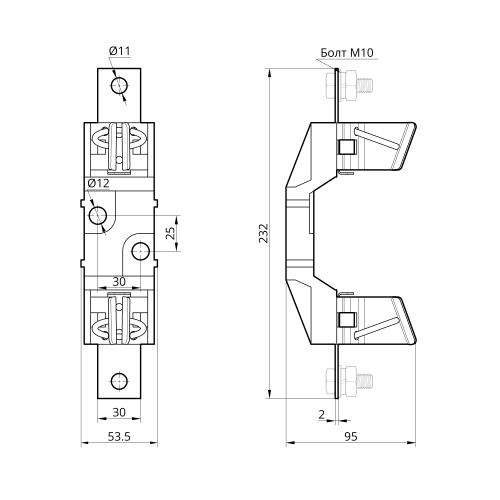 | Тип | Тримач плавкого запобіжника NT2 400А |